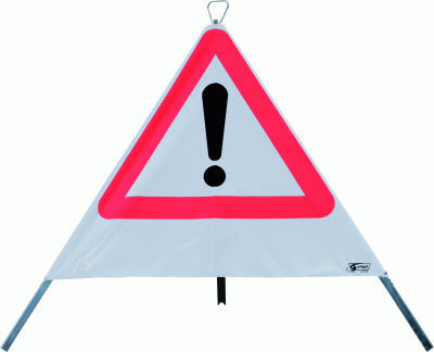 - Gewebe (weiß) mit großen Warndreiecken in rot, fluoreszierend, inkl. stabiler Schutzhülle.