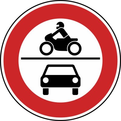 "Verbot für Fahträder,auch mit Beiwagen,Kleinkrafträder und Mofas sowie für Kraftwagen und sonstige mehrspurige Kraftfahrzeuge"