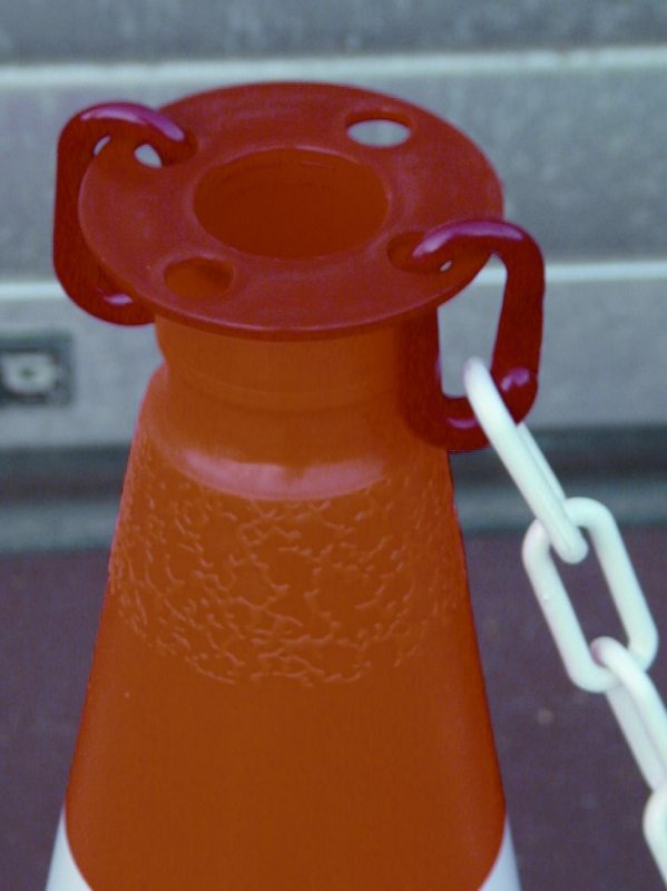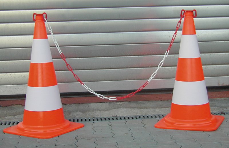 Leitkegelkappe inkl. 2 Notglieder zum Einstecken von Absperrketten in PVC-Leitkegel ab einer Höhe von 500 mm.