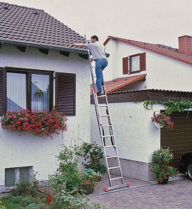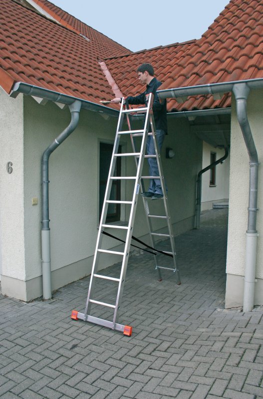 Zweiteilige, Aluminium-Mehrzweckleiter als Steh-, Anlege- und Schiebeleiter einsetzbar.