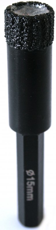 Vakuum Diamant Beschichtung garantiert extrem schnelles, sauberes & exaktes Bohren in härtesten Fliesen. Kein Wasser notwendig! Spezialwachs im inneren der Bohrkrone zur Kühlung & Staubbindung. Problemloses freihändiges Anbohren möglich.